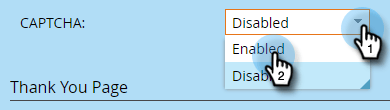 Öppna listrutan CAPTCHA och välj Enabled.