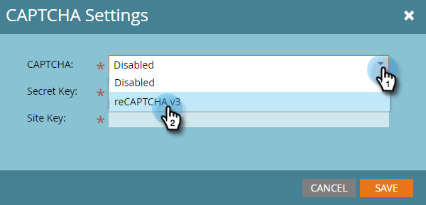 Klicka på listrutan CAPTCHA och välj reCAPTCHA v3.
