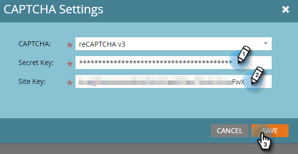Infoga Secret Key och Site Key. Klicka på Save när du är klar.