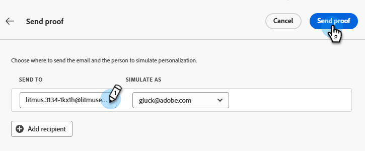 Markera testmottagarna och klicka på knappen Skicka korrektur .