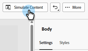 På skärmen Redigera e-postinnehåll klickar du på knappen Simulera innehåll .