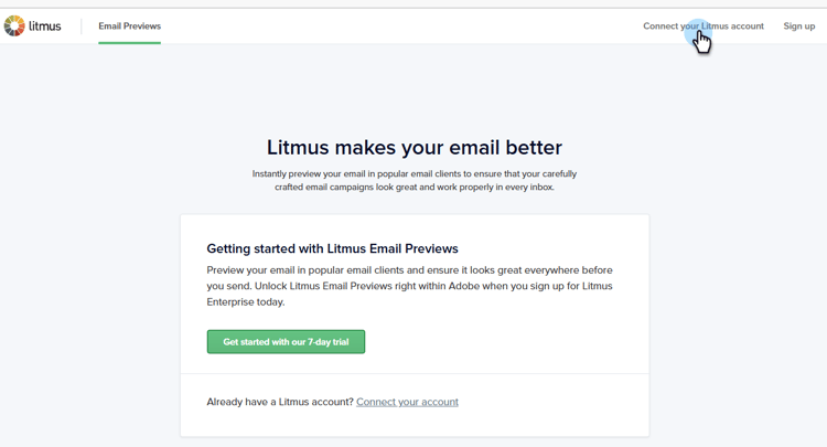 Om du inte redan har det ansluter du ditt Litmus-konto. Om du redan har gjort det går du vidare till steg 6.