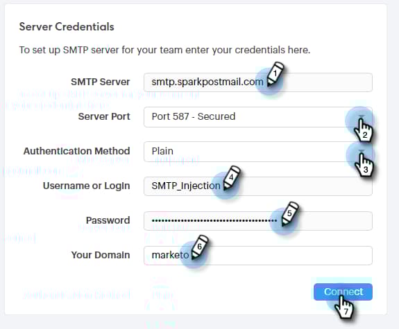 Ange dina SMTP Server-inloggningsuppgifter och klicka på Connect.