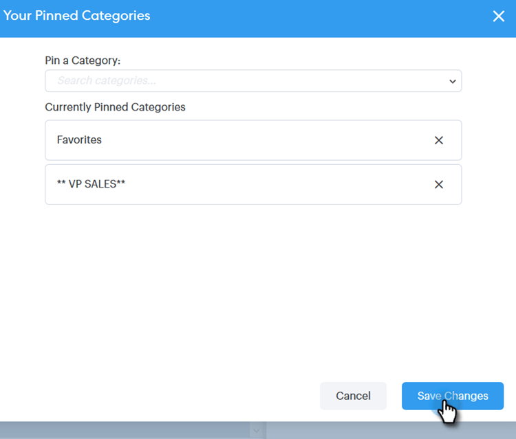 Klicka på listrutan Pin a Category och välj önskad kategori.