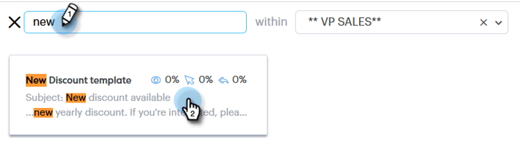 Sök efter mallnamn, ämnesrad eller brödtext i e-postmeddelandet. Klicka på önskad mall för att markera den.
