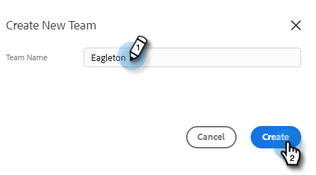 Ange ett teamnamn och klicka på Create.