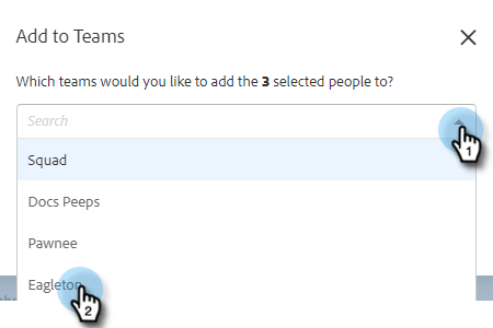 Leta reda på de användare som du vill lägga till i ditt team och markera kryssrutan för dem.