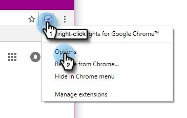 Högerklicka på Marketo logotyp i Chrome och välj Options.