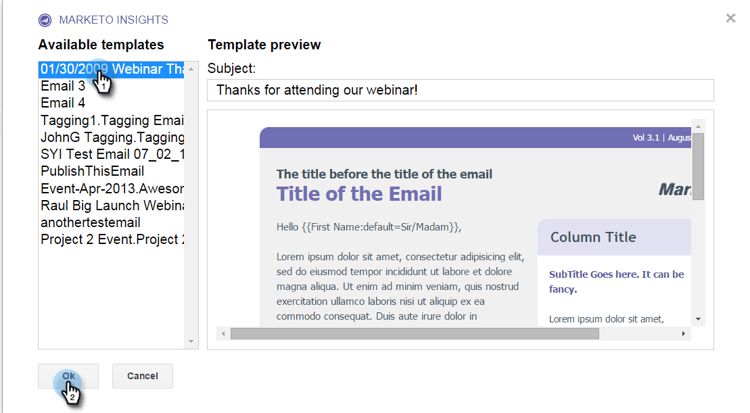 Skicka ett e-postmeddelande med Marketo Insights send-an-email-with-marketo-insights