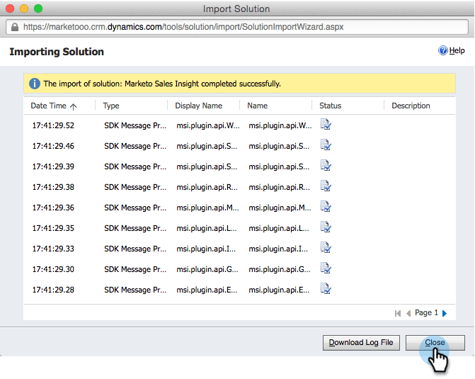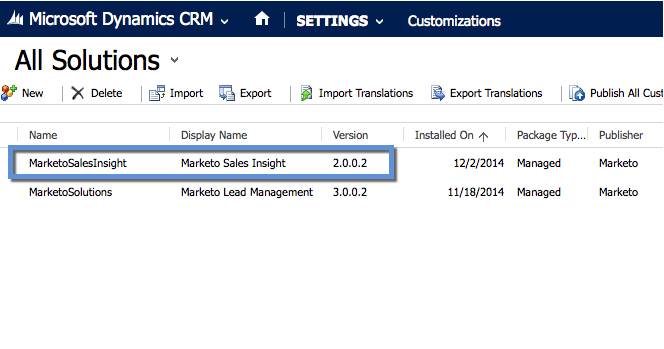 OK, nu är det dags att importera lösningen Marketo Sales Insight till Microsoft Dynamics.