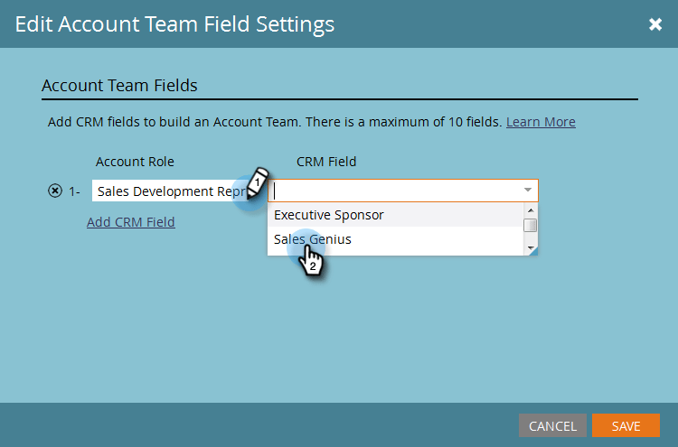 note note NOTE Du kan inte välja Account Owner. Den väljs som standard från kontonivån i CRM. -