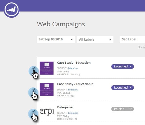 Logga in på Web Personalization och gå till området Web Campaigns.