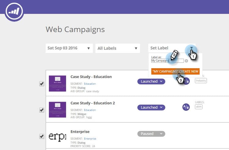 Lägga till en etikett i en webbkampanj add-a-label-to-a-web-campaign