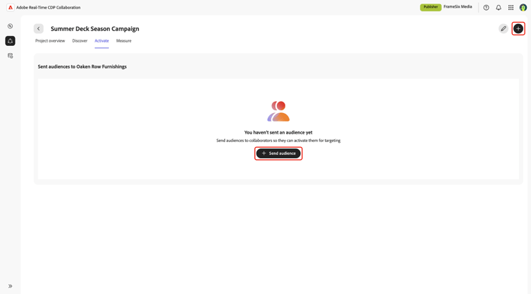 I avsnittet för Sent audiences to-medarbetare visas alla målgrupper som du har skickat. För närvarande skickas målgrupper automatiskt till medarbetarens konfigurerade mål när du har skickat dem. I din medarbetares vy visas dessa målgrupper i avsnittet Activated audiences.