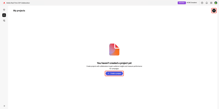 Projekt är central i ditt arbetsflöde i Adobe Real-Time CDP Collaboration. Efter att ha anslutit till medarbetare kan du skapa ett projekt för att köra målgruppsöverlappningsberäkningar och identifiera relevanta målgrupper för kampanjer.