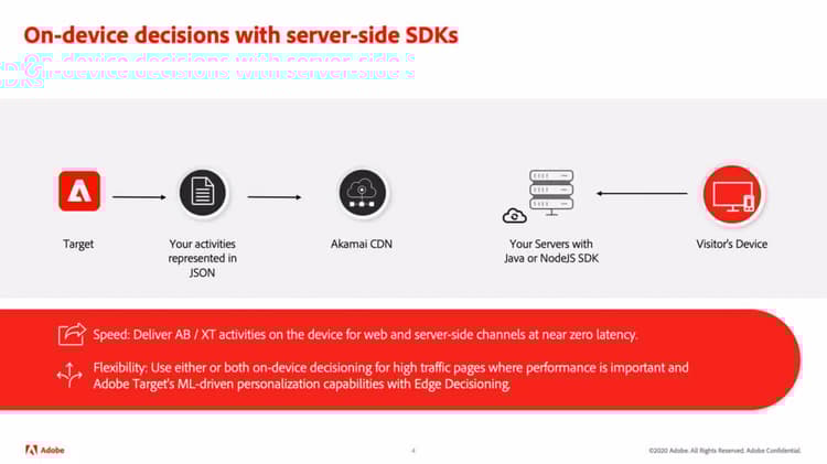 Adobe Target On-device-beslut möjliggör nästan ingen latens för innehållsleverans. Den här 7-minutersvideon: