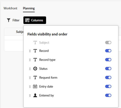 Mer information finns i Skapa och hantera ett begärandeformulär i Adobe Workfront Planning.