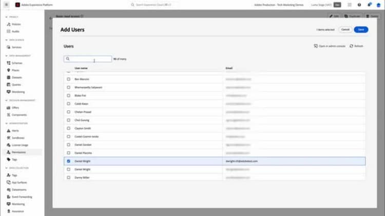 Lär dig hur du hanterar användare och behörigheter i Adobe Experience Platform och datainsamling.