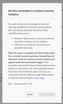 现在会显示 在 Customer Journey Analytics 中使用这个连接 对话框。