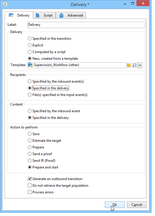 双击 投放 活动并选择以下选项: