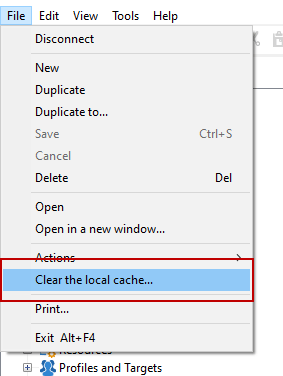 在客户端控制台上,选择 File > Clear the local cache。
