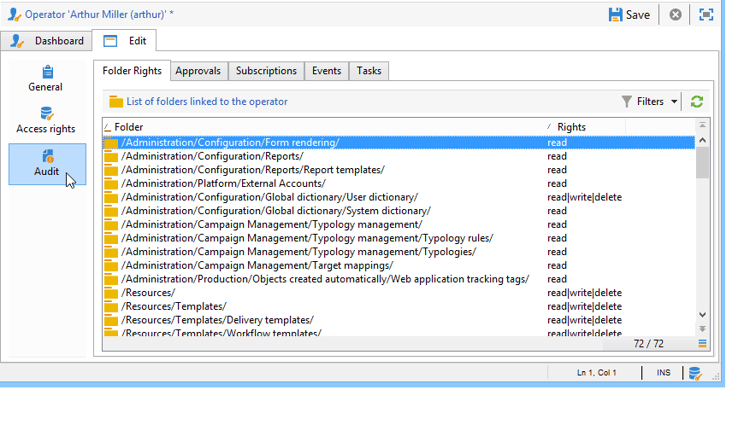 默认情况下,运算符存储在 Administration > Access management > Operators 节点中。