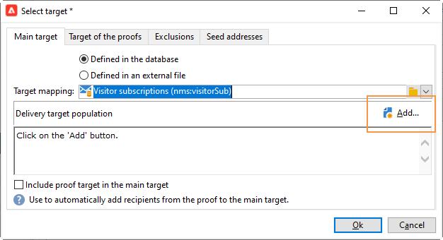 在投放编辑器中,选择 To 以定位LINE投放的收件人。 在 Visitor subscriptions (nms:visitorSub) 上执行定位。