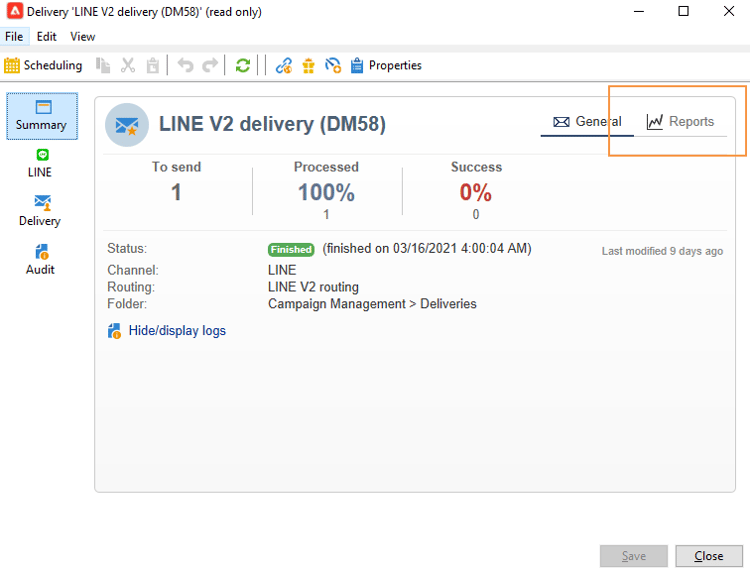 发送投放后,您可以从LINE通过菜单Campaign Management > Deliveries查看 Explorer 报告。