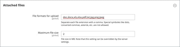 对于 File formats for upload,输入您支持附加到引号的文件类型的后缀。
