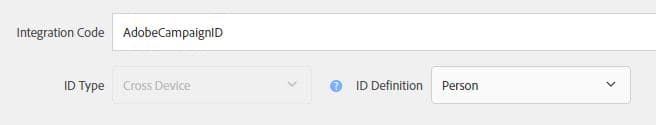 然后在Adobe Campaign中配置数据源。将在Adobe Campaign UI中创建两个数据源:一个基于声明的ID或经过哈希处理的客户ID,另一个基于Marketing Cloud ID或请求者UUID。对应于每个ID的目标ID被添加到各自的字段中。例如,AAM目标Adobe Campaign的目标ID — 声明的ID将添加到数据源设置中,并对帐密钥作为经过哈希处理的客户ID。