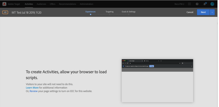 无法在Adobe Target VEC中加载页面URL。