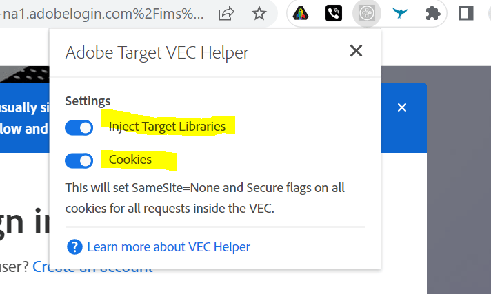 从https://chrome.google.com/webstore/detail/adobe-target-vec-helper/ggjpideecfnbipkacplkhhaflkdjagak安装扩展