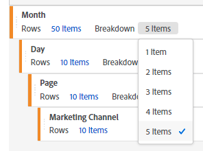 在Adobe Analytics中的Workspace功能之一的“表生成器”中创建报告时,不像行数,细分数量仅限于五项。
