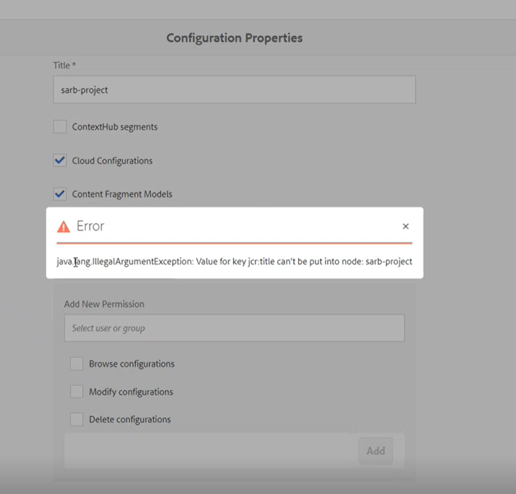 - 尝试修改配置时收到以下错误:java.lang.IllegalArgumentException:键jcr:title的值不能放入节点: