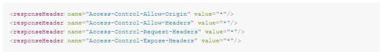 Access-Control-Allow-Origin、Access-Control-Allow-Headers和Access-Control-Allow-Methods添加为serverConf.xml的中继部分下的responseHeader: