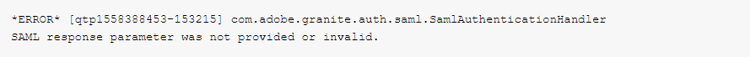 在创建SAML 2.0配置以在生产创作实例上启用SSO登录时,您收到来自AEM的错误消息。 这是在由Azure提供程序执行登录并检索SAML令牌以在AEM端执行身份验证之后进行的。