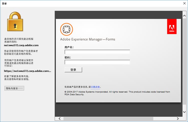 note note NOTE 在 URL 中使用完全限定的主机名。Adobe 建议您使用 HTTPS 协议。 现在,AEM Forms Document Security 配置为使用具有默认 AEM Forms 登录 URL 的扩展身份验证。