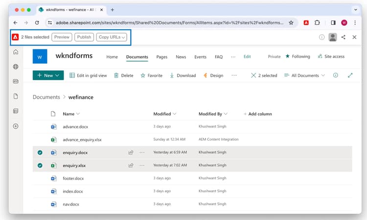 - 使用您选择的工具创建表单: 通过分离内容源提高创作效率。 现成您可以使用基于文档的创作(Microsoft SharePoint或Google Drive)、WYSIWYG创作(通用编辑器)。 您可以在相同的表单网站上使用多个内容源,并使用首选的创作工具(如Microsoft Excel、Google Sheets、通用编辑器)创建各种表单,包括联系我们表单、营销表单、注册表单、业务流程表单等。