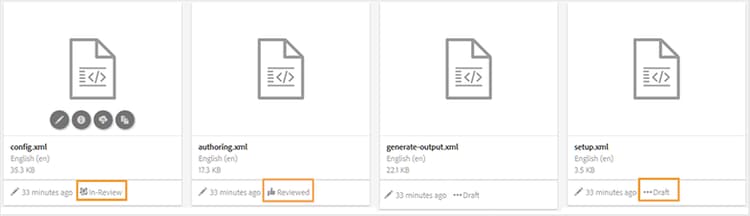 为了管理文档的准备工作,AEM Guides提供了文档状态属性来指示文档的当前状态。 文档状态可帮助您快速确定文档是新文档、处于审阅中还是审阅已完成状态。