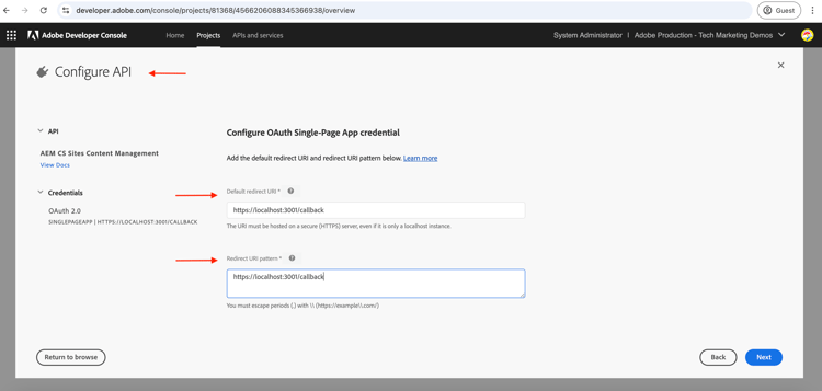 配置ADC项目步骤是重复,来自设置基于OpenAPI的AEM API。 可重复添加Assets、站点API并将其身份验证方法配置为OAuth单页应用程序。
