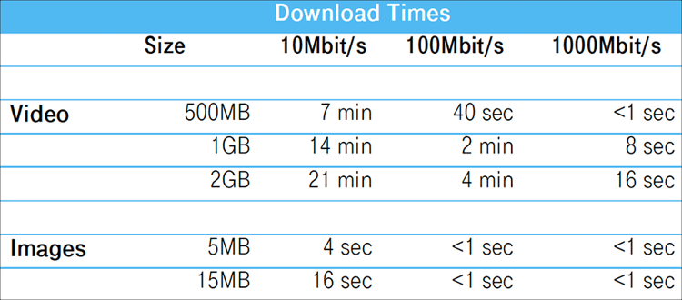 下表很好地概述了网络连接关键数据对性能的预期影响以及潜在的等待时间。