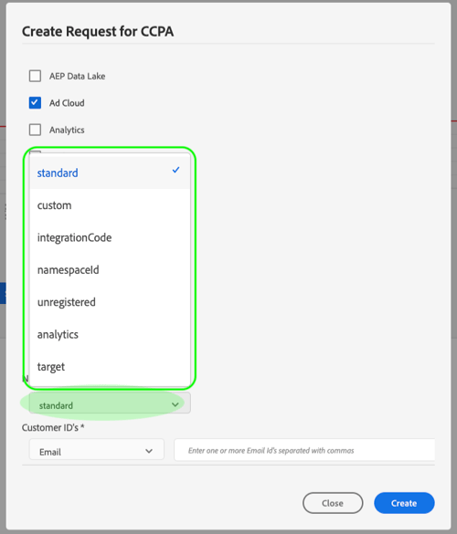 在 Namespace type 下,为发送到Privacy Service的客户ID选择适当的命名空间类型。