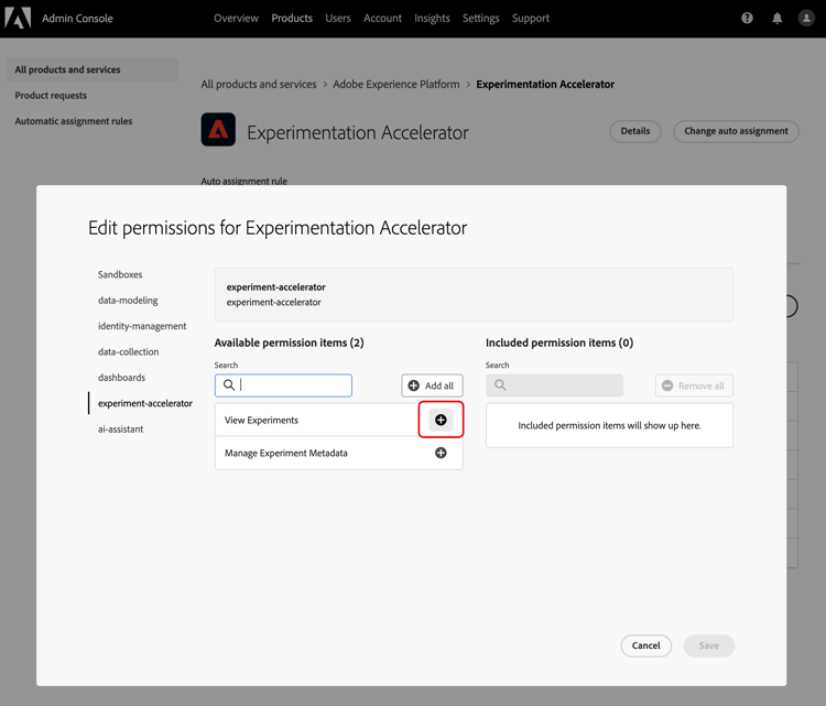 要使用Journey Optimizer Experimentation Accelerator,您需要访问沙盒和以下相关权限: