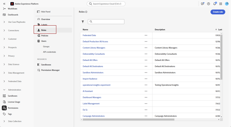 您可以使用访问控制提供对沙盒和联合受众组合的基于角色的访问。