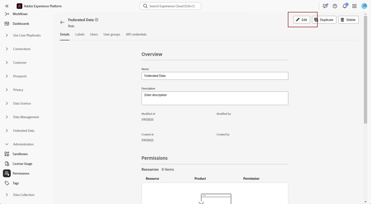 选择 编辑 以修改您的角色权限。