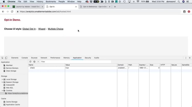 请在以下视频中,观看选择加入在页面上运作的快速演示,以及它对 Experience Cloud 解决方案是否可以设置 Cookie、启动信标等将会产生何种影响。