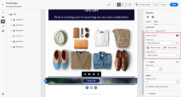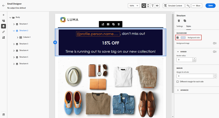 note note NOTE 这是最常见的用例。Adobe 建议在列级别设置背景颜色,因为这可在编辑整个电子邮件内容时提供更大的灵活性。 您也可以在列级别设置背景图像,但很少这样做。