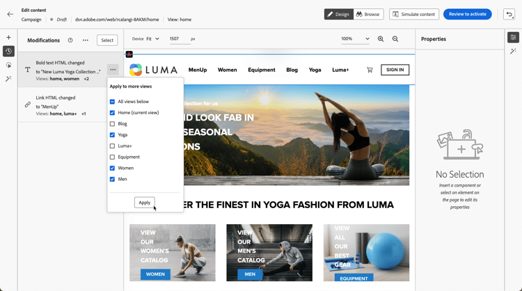 在Adobe Experience Platform Web SDK实施中完成SPA设置后,您需要导航浏览要应用修改的网站的所有视图。 请按照以下步骤操作。