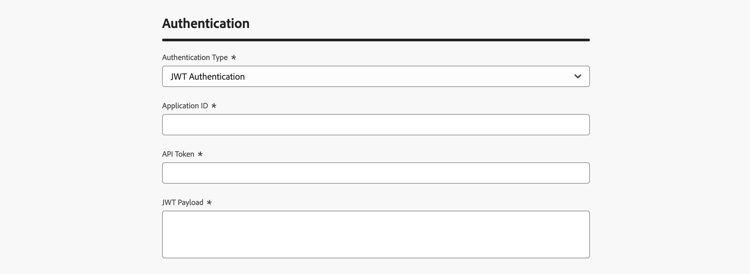 - JWT身份验证 — 如果您的端点需要JWT身份验证,请提供所需的详细信息。
