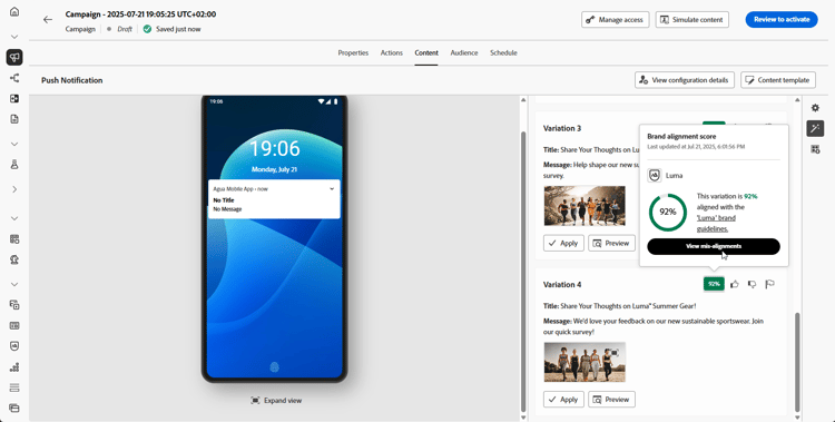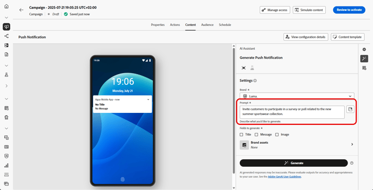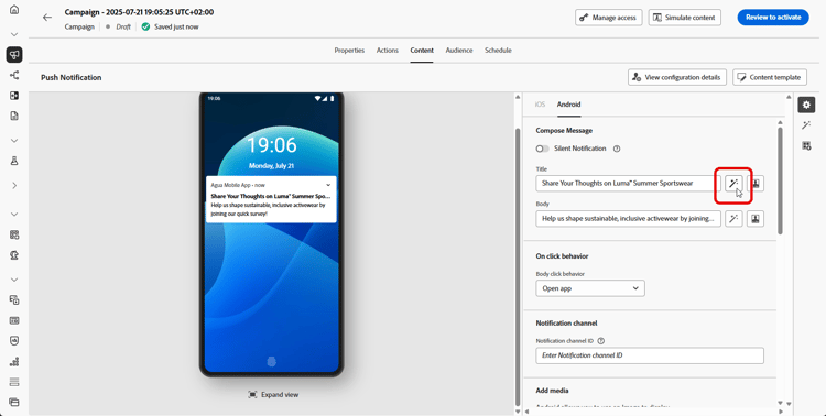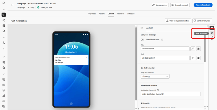 创建消息并对消息进行个性化后,在Journey Optimizer中使用AI助手将推送通知内容提升到新的水平。